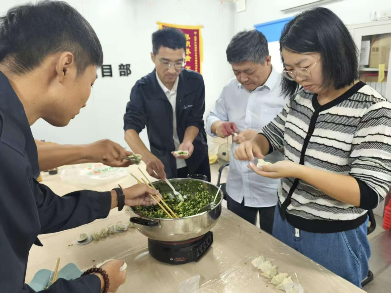 活動籌備伊始,現場便洋溢著熱鬧氛圍。員工們自發圍坐,揉面搟皮、調餡包餃、切果備菜,在默契協作中流淌著歡聲笑語。一個個飽滿圓潤的餃子、一盤盤鮮亮誘人的瓜果,不僅是舌尖的盛宴,更凝結著同事情誼與“公司如家”的暖意。